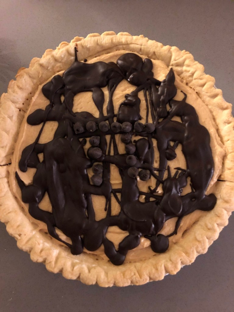 Chocolate Peanut Butter Pie (one of my personal favorites; inspired by the Perkin’s version I used to have as a kid. I used the linked recipe except used a regular pie crust and chocolate chips instead of Reese’s pieces.)