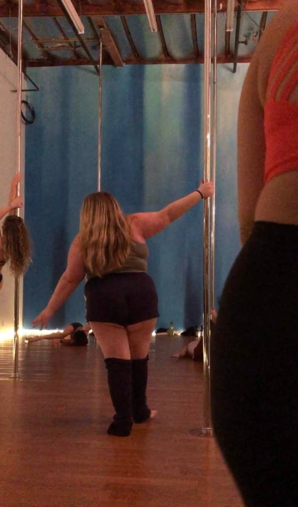 I had always wanted to try pole dancing but had been to shy to give it a shot until a friend went to an Inspiration Studios Class in Redwood City, CA taught by the talented Laura with me. Pole dancing is such a fun workout. As a chubby adventurer, I did tend to be a little slower and take a little more time to learn moves and tricks than my peers. But with time and patience I had a lot of fun and felt sexy doing it. For me pole wasn’t just about the twirling or climbing or other athletic components. It was about the artistic expression, the combination of dance and fitness. I especially loved the “Down and Dirty” series of classes that focused on learning a routine to a particular song.