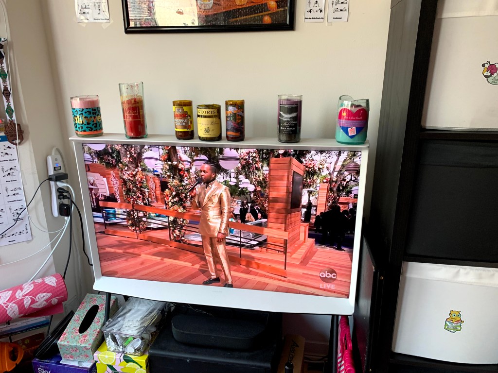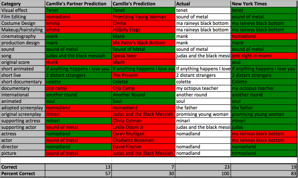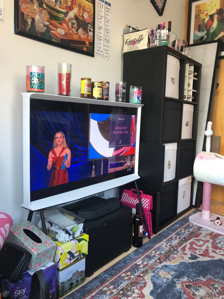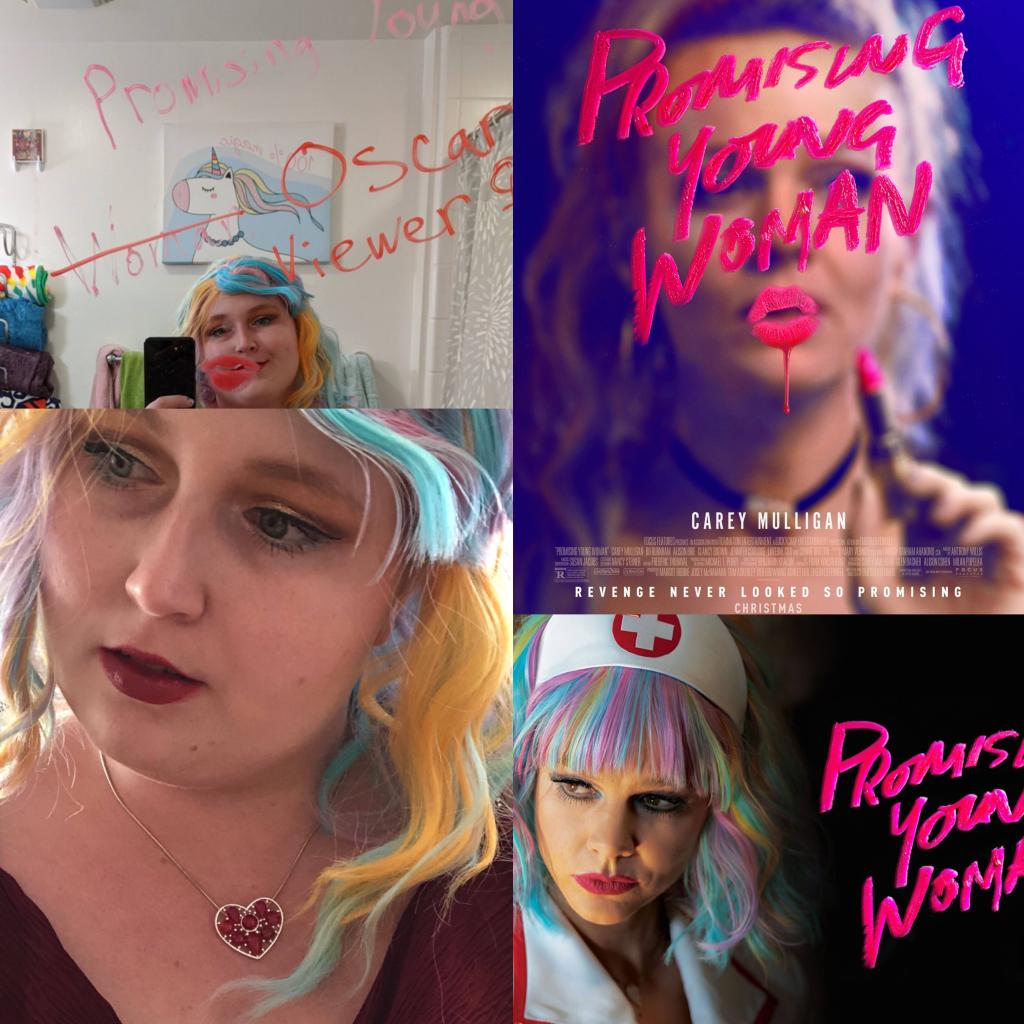 My partner is very into movies and the Oscars so we’ve made a tradition of marathoning academy award nominees leading up to Oscar Night. After watching copious nominees, we celebrate with glamorous outfits and fancy appetizers for a just-the-two-of-us at home Oscar viewing party. This year, Judas and the Black Messiah, Promising Young Woman, and The Father all touched my soul (if you need a good cry, I recommend any of the three). We keep a tally of who gets the most accurate predictions for academy awards and this year the New York Times kicked both of our asses. My ensemble this year was inspired by a juxtaposition of Promising Young Woman and red carpet glam.