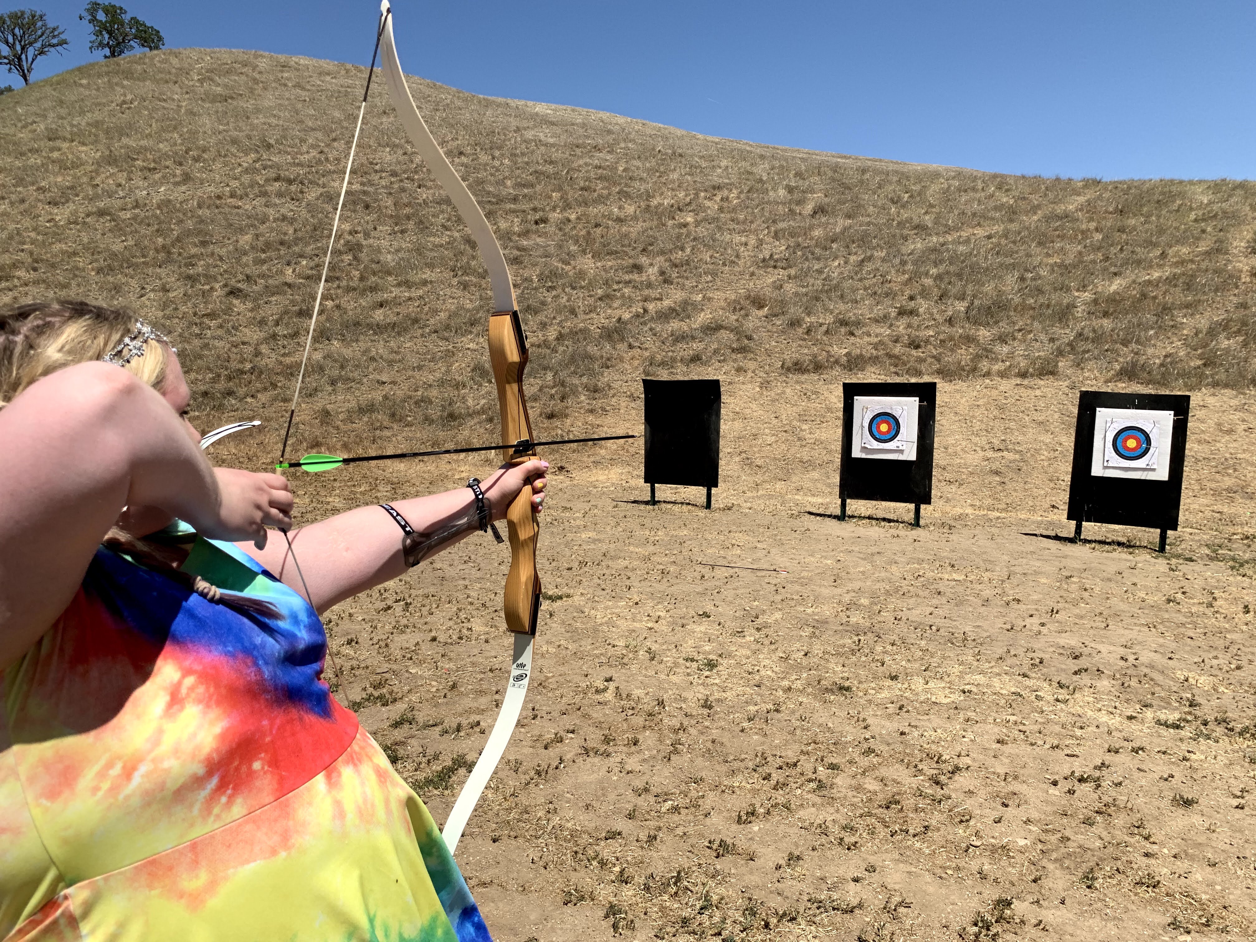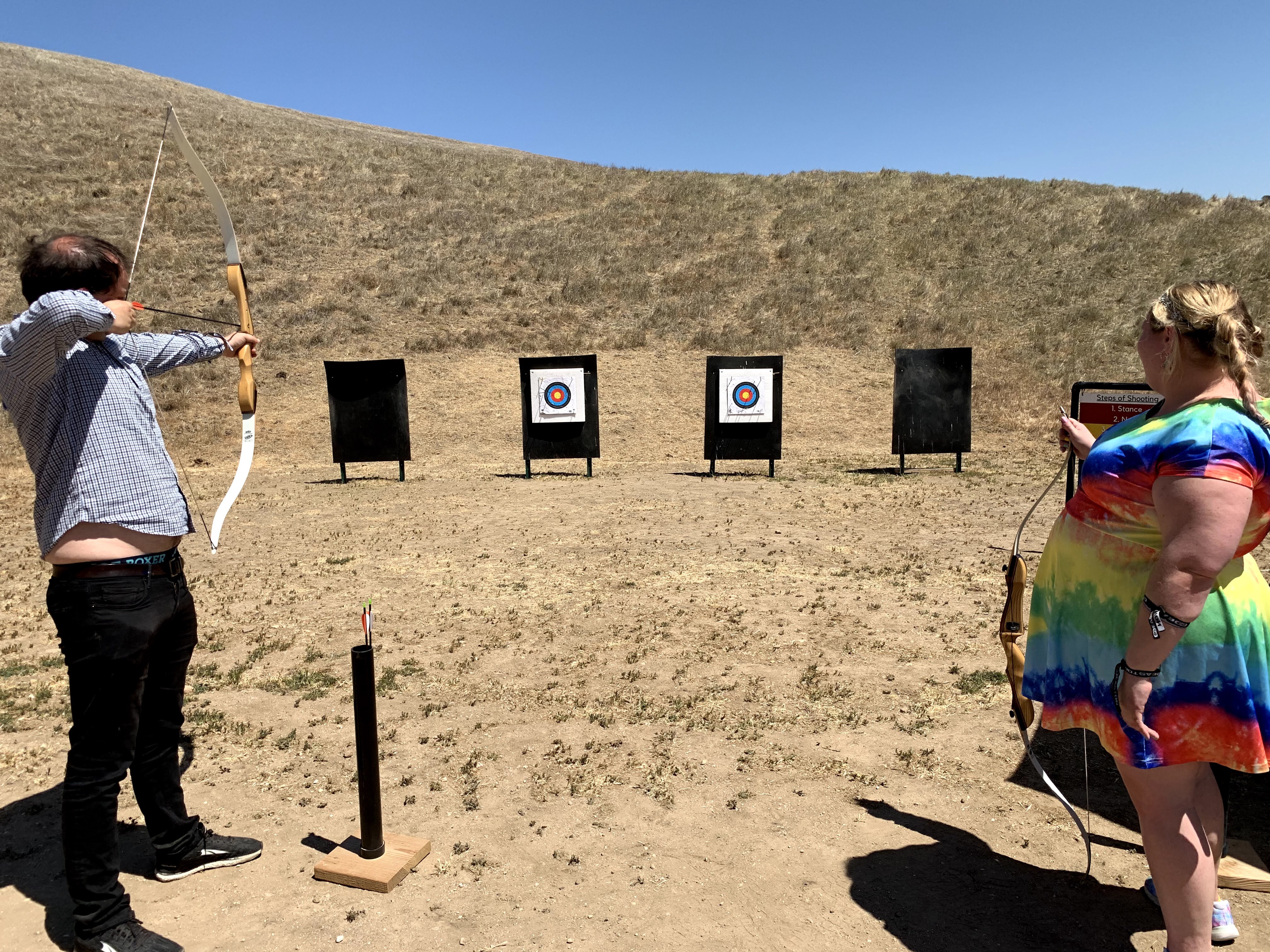 The most important part of archery? Safety! Never go to retrieve your arrows while others are still shooting. Always wait for the all clear that all arrows have been dispensed and no one is actively shooting. There is a lot of technique involved in archery but the basic idea is to have a firm stance, a clear gaze, pull your arm straight back, and release cleanly. Beyond these basic steps the next challenge is learning accuracy and precision. Accuracy is hitting the target and precision is consistently hitting the same spot (preferably the target). Archery often ends with a final challenge of popping a balloon on the target which is hard but a lot of fun! Most recently I did archery with my partner at Cass Winery in Paso Robles and declared victory as the first one to pop the balloon! Archery is so much fun and very accessible for people of all ages and fitness levels.