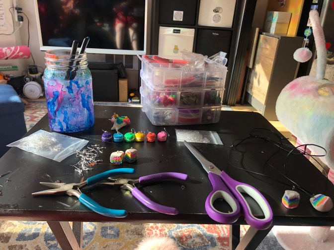 I really enjoyed this craft and thought it was the perfect way to celebrate rainbow tones for pride! I highly recommend both the oven bake clay kit and the polymer clay for beginners book if you’re interested in making clay jewelry or other clay creations. I have a lot of jewelry making supplies from doing beadwork and epoxy art but if you are just getting started with jewelry, I recommend a kit like this one that has some basic jewelry necessities like jewelry pliers and earring fish hooks. Happy Pride 2021 and here’s to a colorful future!