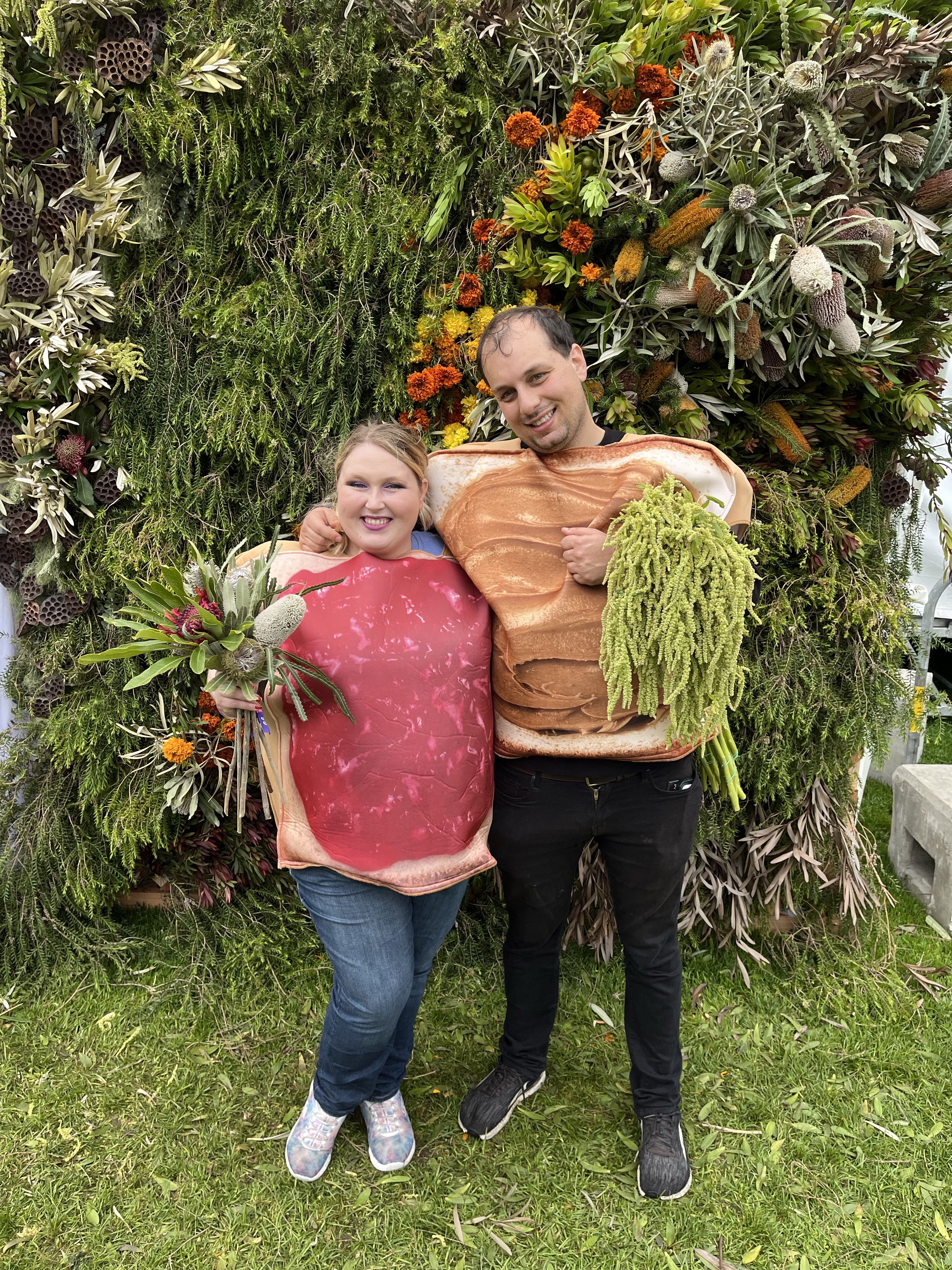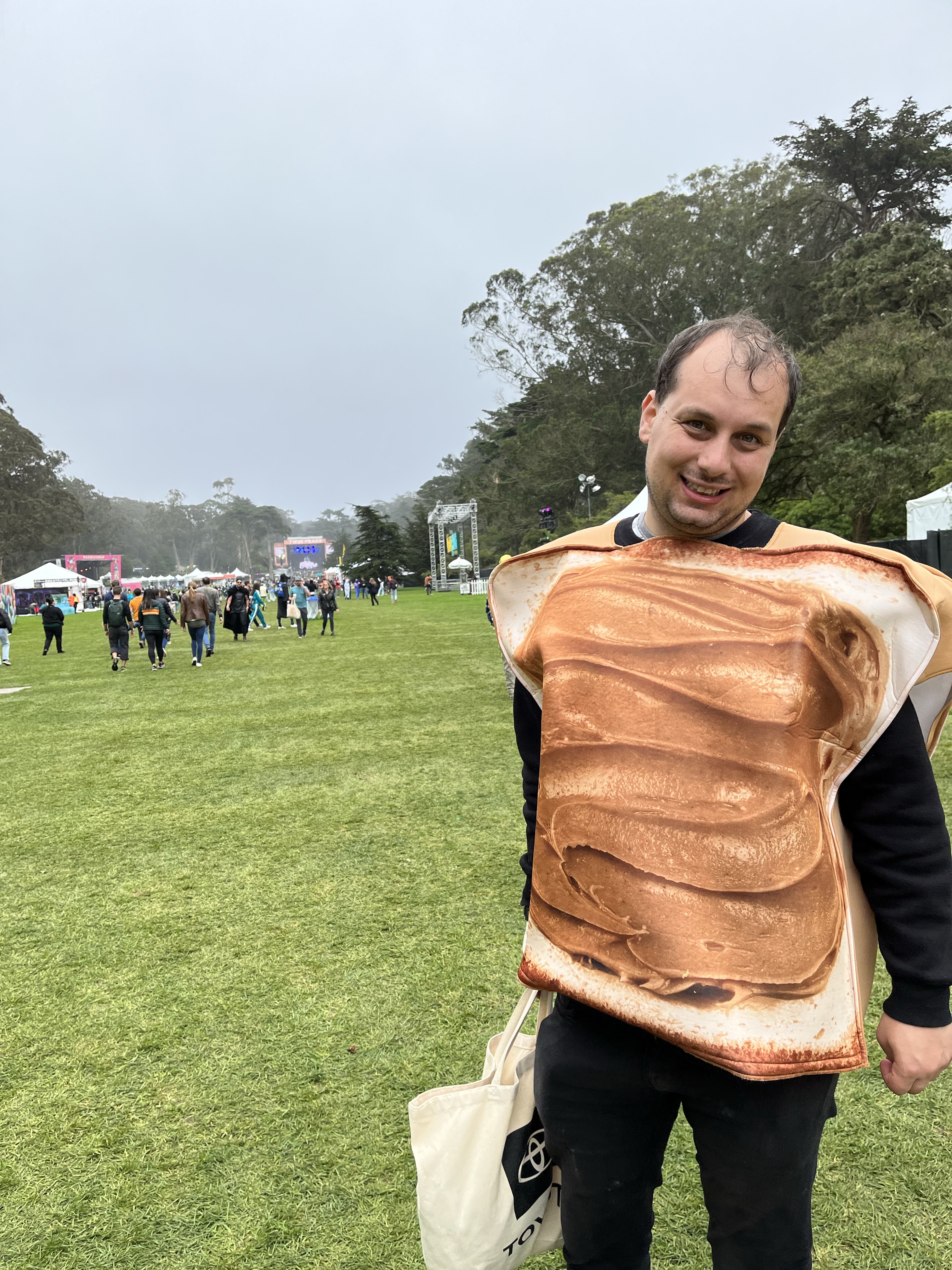 My partner and I did our first couples’ costume together this year for our Saturday at Outsidelands: PB&J. This costume slayed! We easily had a hundred or more strangers sing Peanut Butter Jelly Time to us or compliment our costume. It was simple and adorable and it totally worked for us.