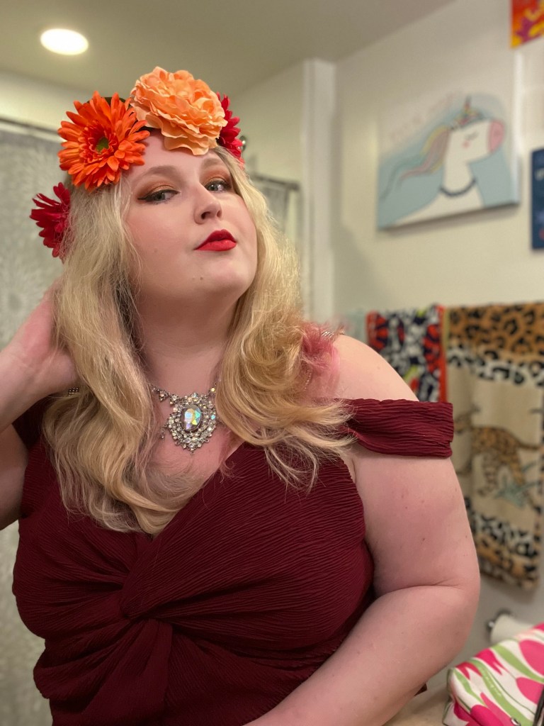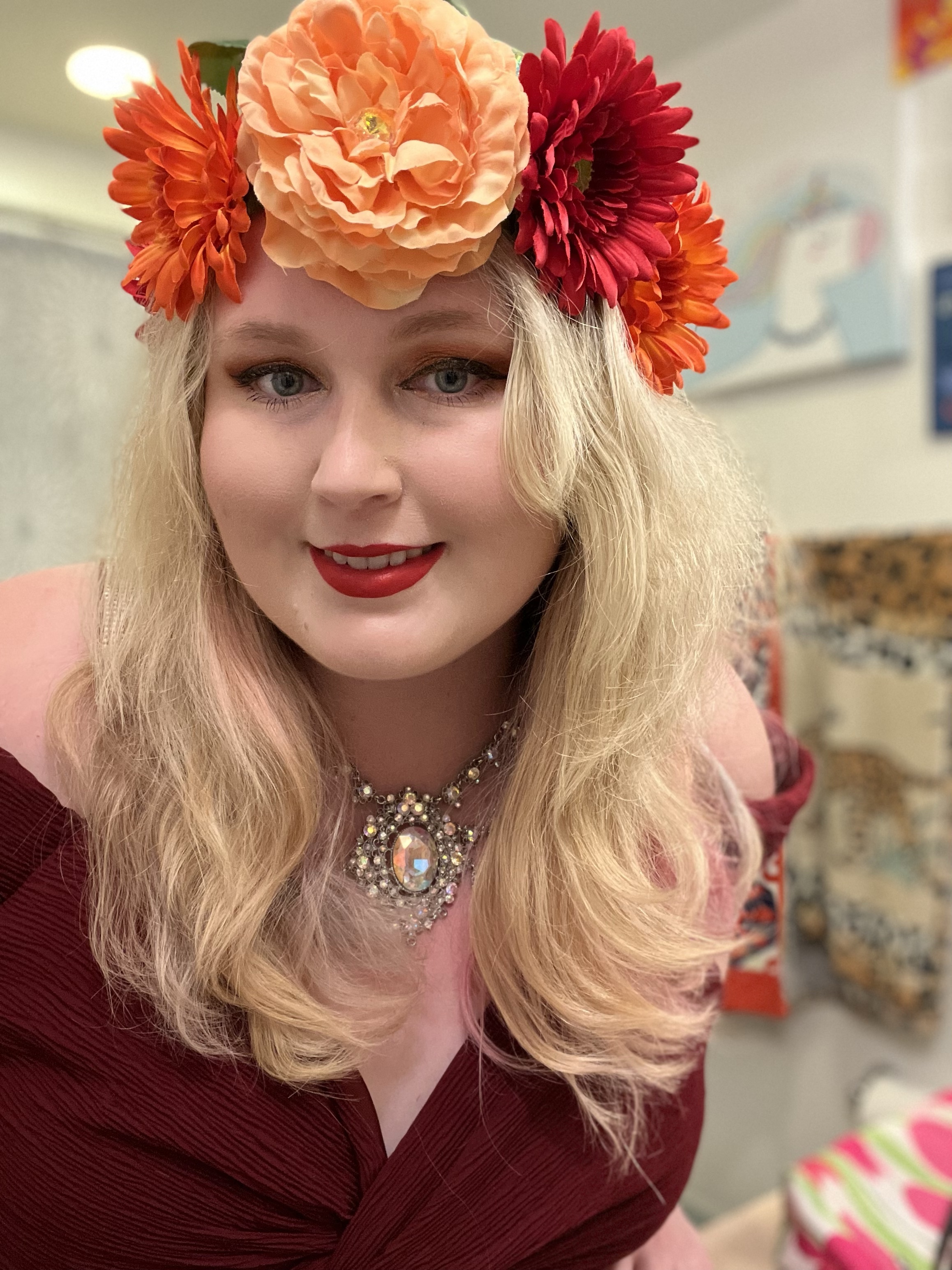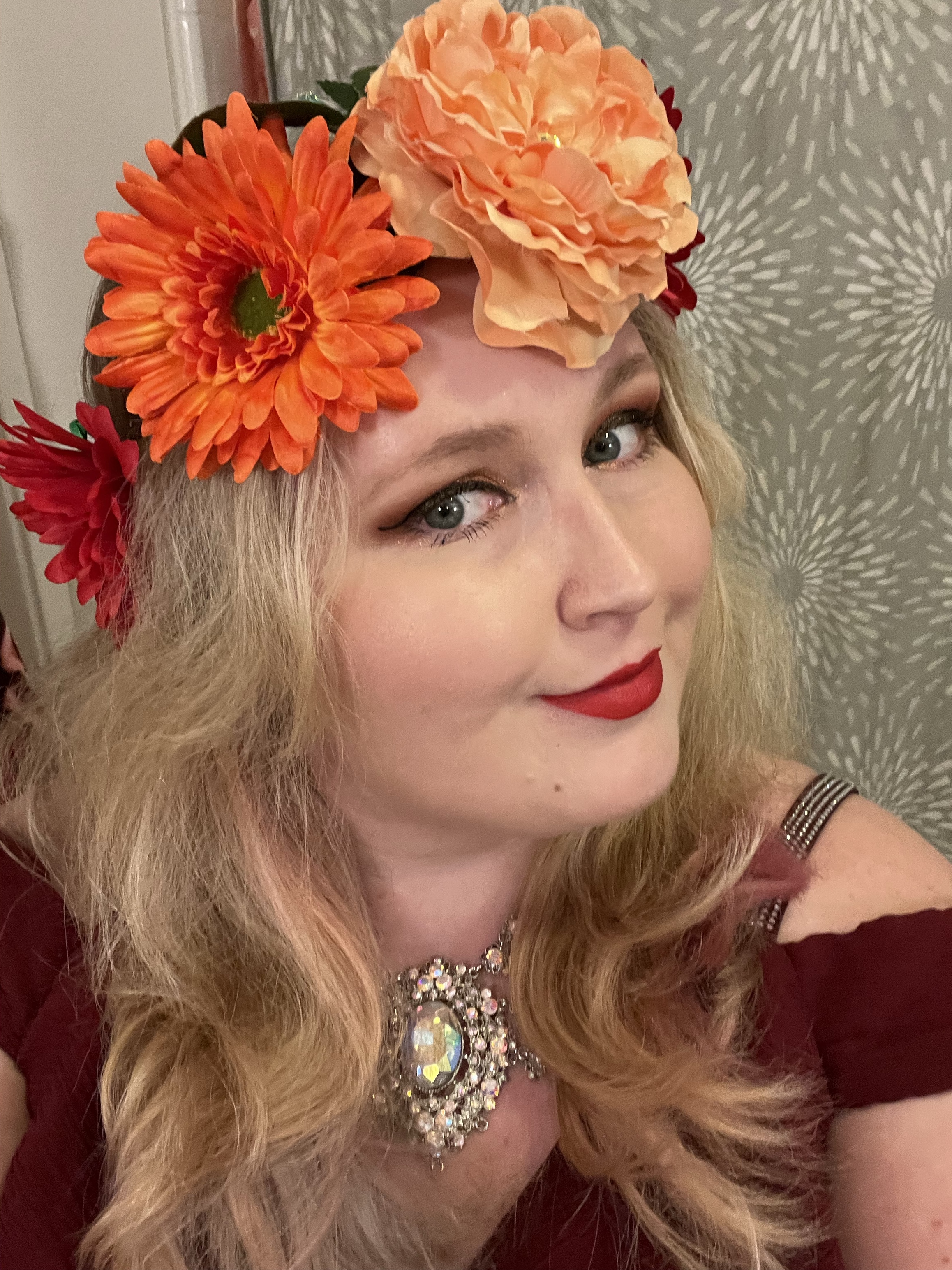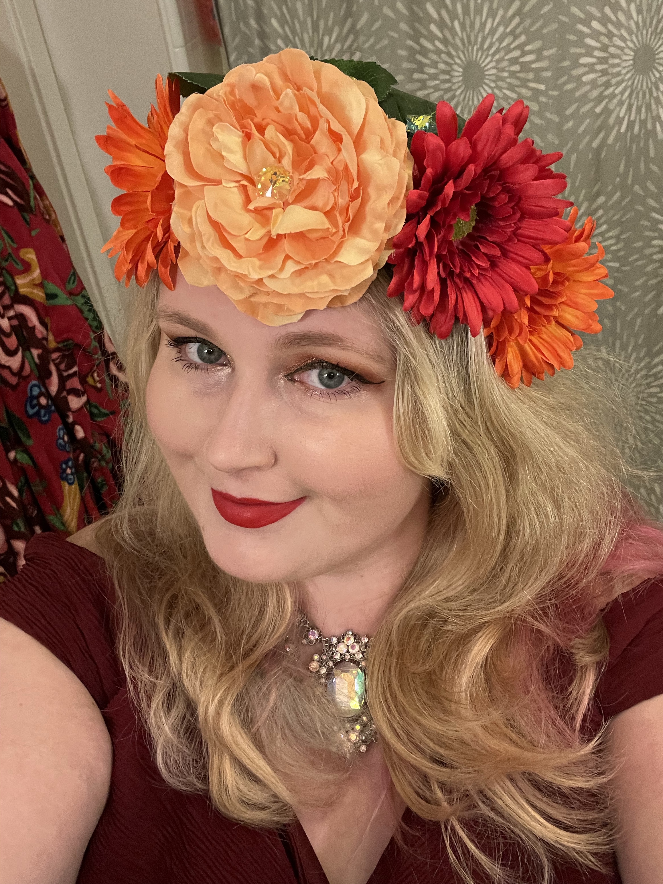In the fall I acquired some beautiful red and orange fake flowers that until now I hadn’t had the opportunity to use for crafting. My initial inspiration was an autumnal flower wreath but I decided to use the flowers to hand make a flower crown instead and loved the results. The supplies I used were: fake flowers, jewelry wire, crystals, ribbon, and a hot glue gun. The final product featured alternating red and orange flowers with crystal accents.