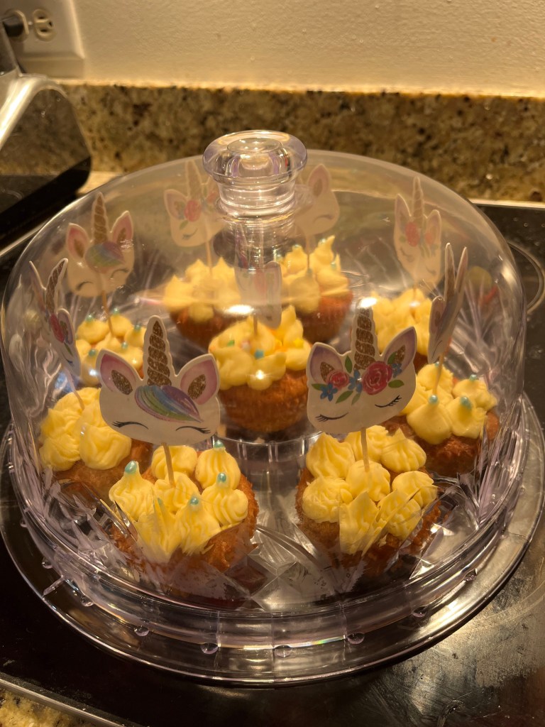 - Scoop batter into cupcake liners and bake for 25-30 minutes, or until an inserted toothpick comes out clean.