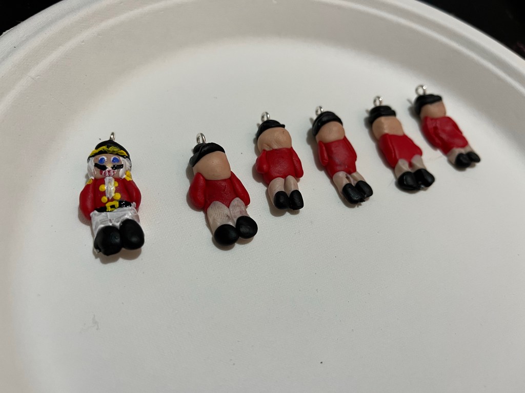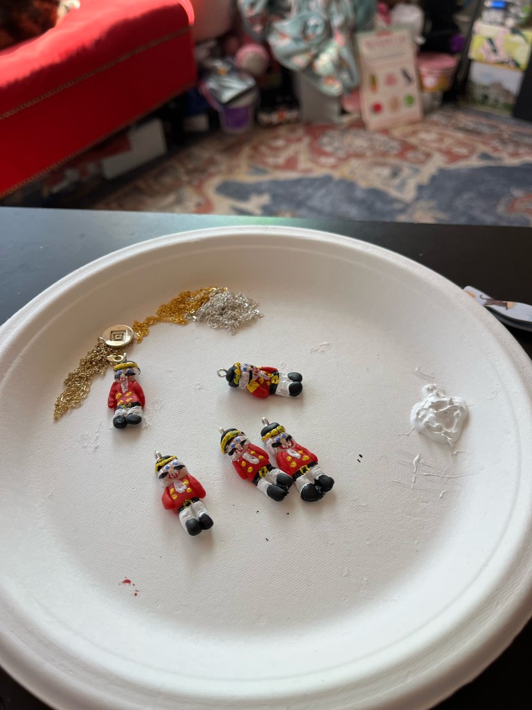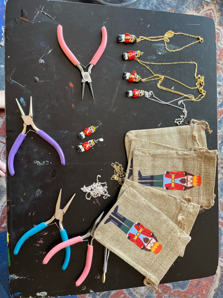 The Nutcracker is my favorite ballet, and I have had the joy of seeing it as a tradition every December since I was 2 years old or so. To celebrate enjoying a production of the Nutcracker live for the first time since the pandemic, I made nutcracker-themed necklaces for all of my friends attending the ballet.