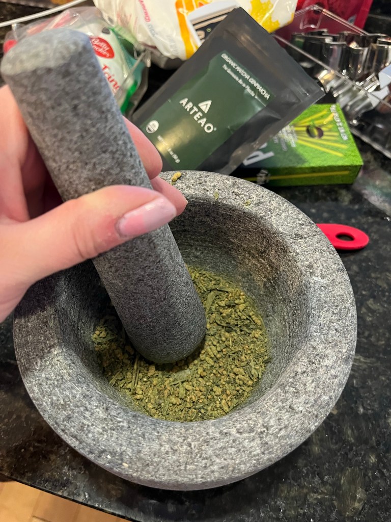 - 2tbsp matcha green tea powder (I hand ground my matcha in a mortar and pestle but I strongly recommend buying pre-ground matcha for a better final texture)