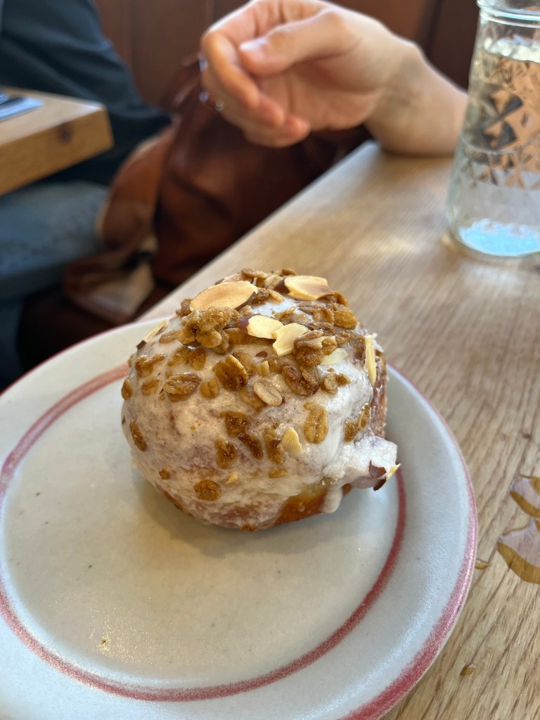 Early to Rise is well known for their impressive donuts of the day, which was excellent. We got a reservation and didn’t have to wait which was great because walk ins were facing a 20+ minute wait time. The donut of the day was a blueberry ricotta filled donut with an almond topping. It was the highlight of the meal.